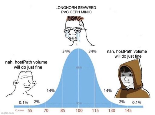 I personally think of a small DIY rack stuffed with commodity HDDs off Ebay with an LVM spanned across a bunch of RAID1s. I don’t want any complex architectural solutions since my homelab’s scale always equals 1. To my current understanding this has little to no obvious drawbacks. What do you think?