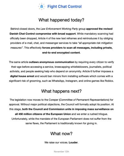 Look, I’m not a fan of chat control. But the blame doesn’t lie with the Danes, it’s the whole of the EU one must blame.