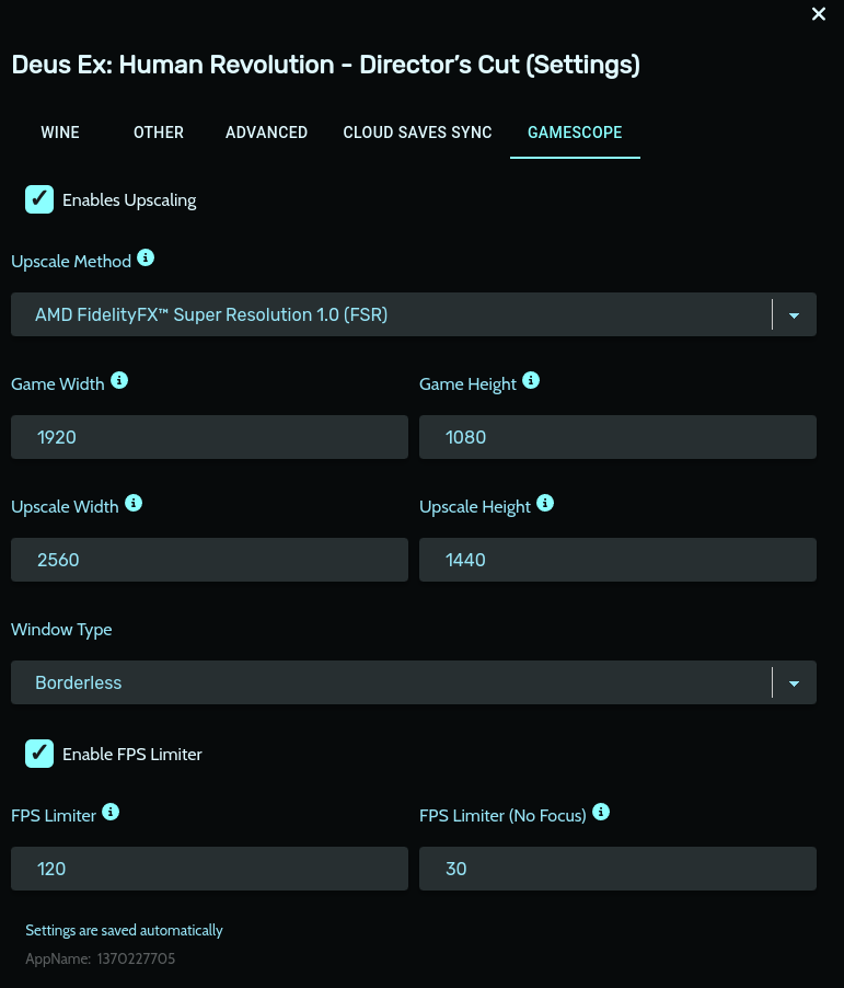 it can be configured with a simple GUI (as seen above) and gives you all the options you could reasonably need. One of the big improvements is that on wayland, unlike when used through steam, it will actually close the game when told to, without requiring you to maunally kill the gamescope process.