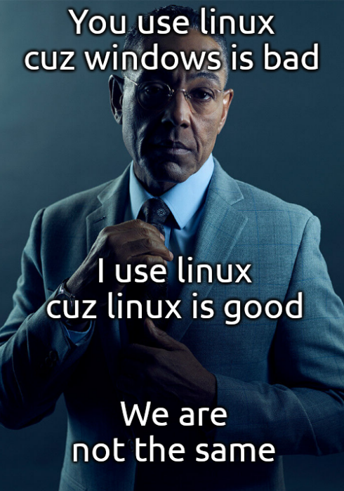 You use Linux because of your superiority complex and need to be seen as cool.