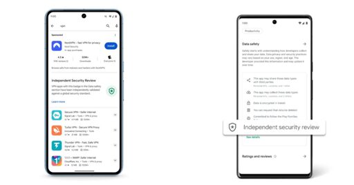One aspect of the Data Safety section that the Play Store introduced last year is the ability to feature “Independent security reviews.” Google Play is more prominently surfacing that badge when you search for VPN apps.