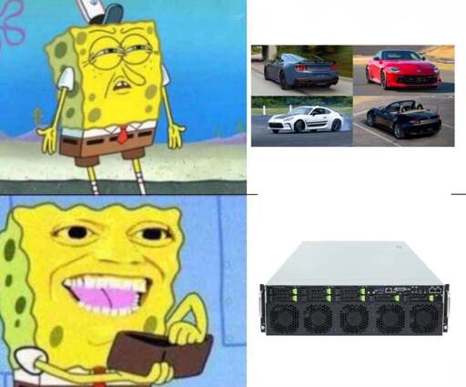 And how many of those could you buy for the money one of these cars costs? You might be in this meme, and this meme may compare things that fulfil the same purpose (crisis-wise) but that price difference is one not to be dismissed.