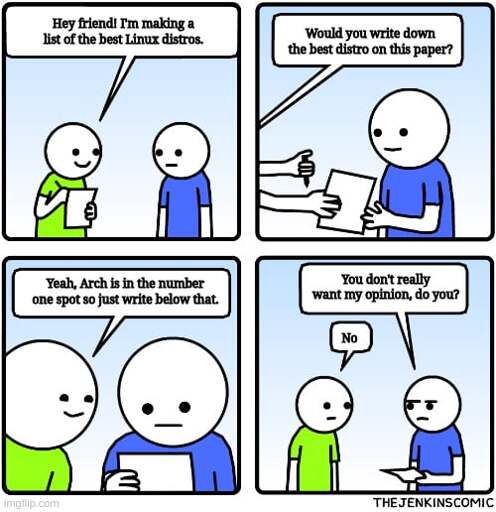 This guy uses arch btw.No seriously, there’s plenty of arch elitism in this thread alone, And other distros too. You really don’t need to be preemptively defensive about it though.