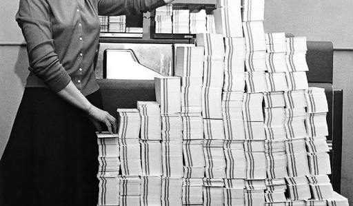 So an 80 column card could fit 4 words across. Thats why teletypes and terminals had 80 coulmns of text - so they were the same size as punch cards.