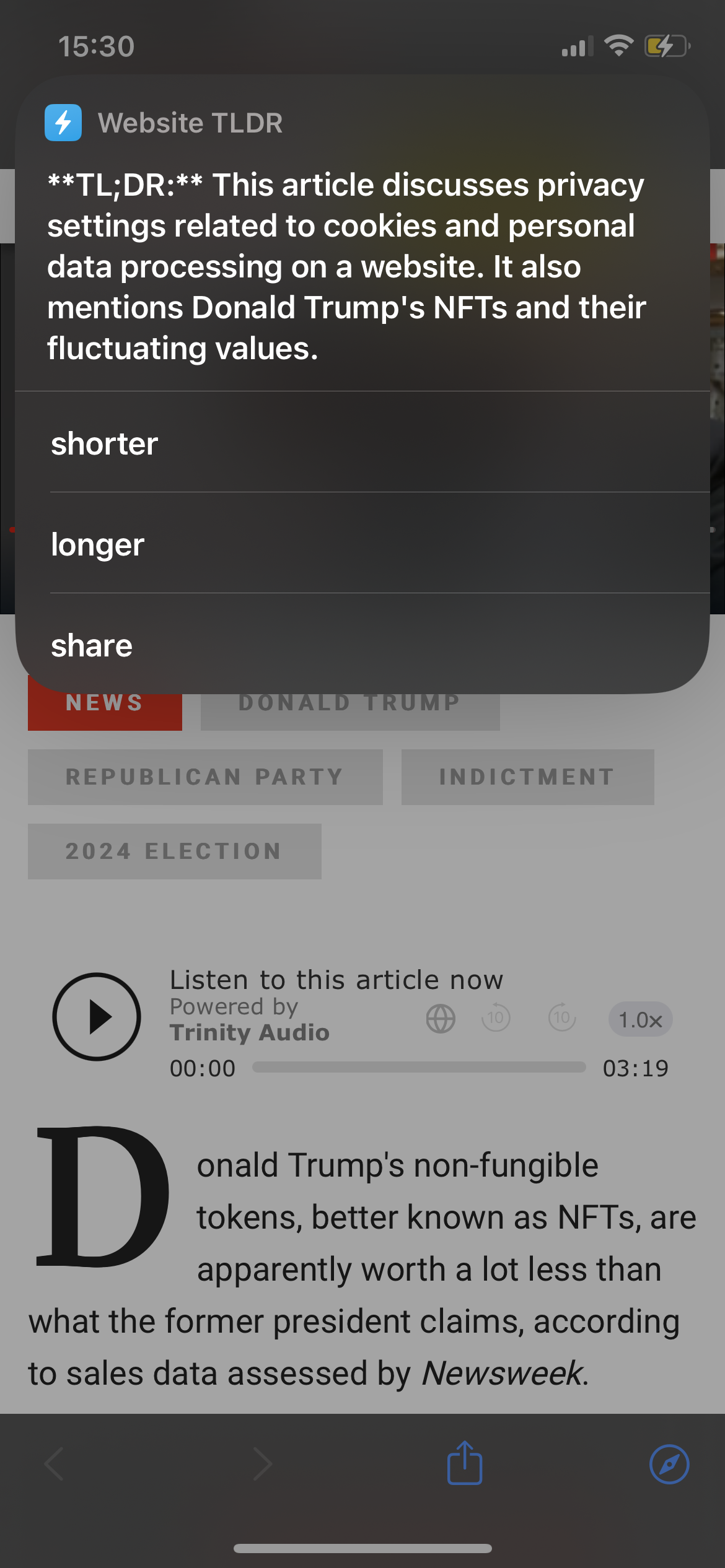 ChatGPT is getting the entire website and is supposed to summarize the article on it. The article has nothing to do with cookies or privacy settings.