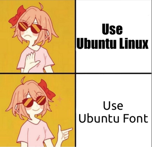 Waffelson@lemmy.world to linuxmemes@lemmy.world · 8 months agoYour favorite font for terminal and GTK/QT apps?lemmy.worldimagemessage-square83linkfedilinkarrow-up1523arrow-down112