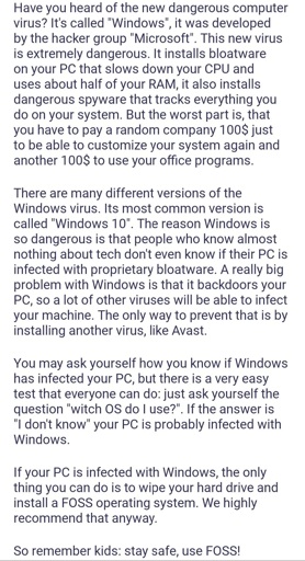 Linux@lemmy.ml•Be on the lookout for this scary piece of malware! Your tech illiterate relatives' PCs are probably already infected!English