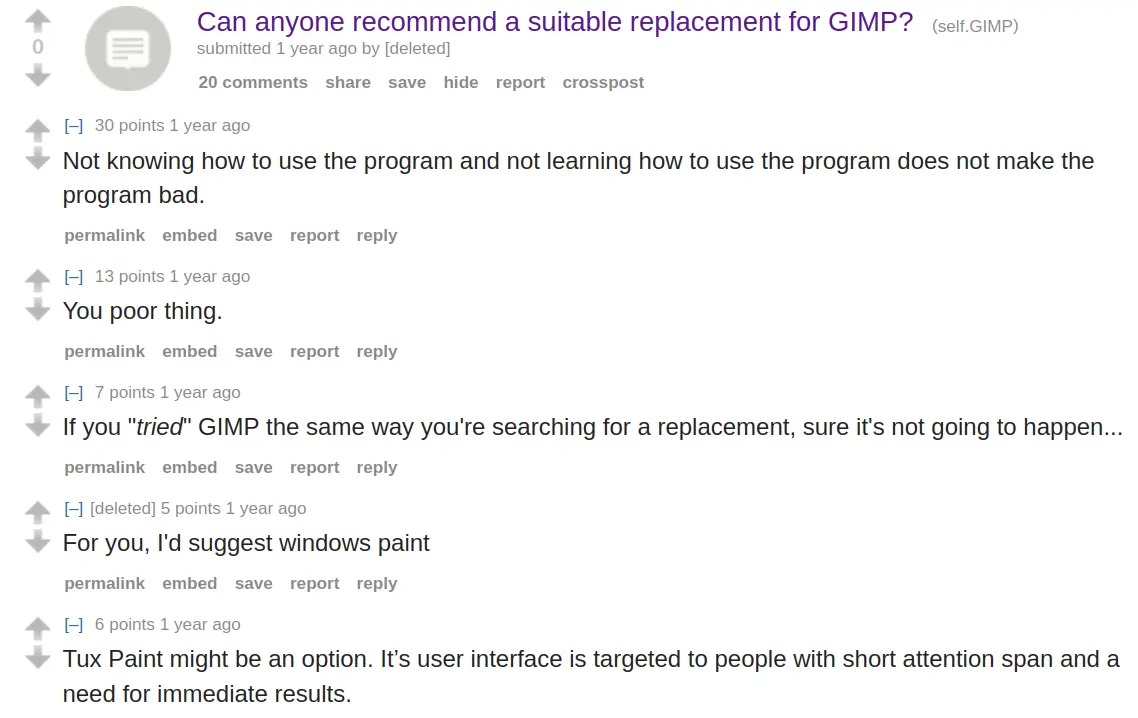 I’ve tried learning GIMP, and it sucks. I’m not saying GIMP sucks, but you have to be crazy to not see that it’s hard to learn.