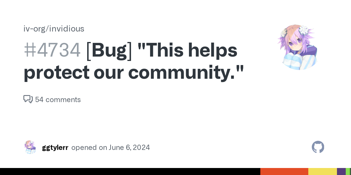 arrow-up10arrow-down1external-linkYoutube has fully blocked Invidiousplus-squaregithub.comcaptainkangaroo@discuss.tchncs.de to DeGoogle Yourself@lemmy.ml · edit-21 year agomessage-square0linkfedilink